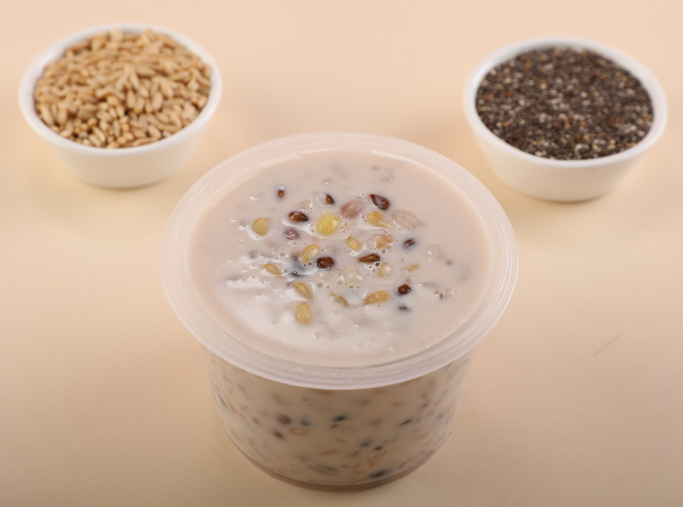 配料:水、有机纯牛奶、有机白砂糖、有机椰浆粉、有机三色青稞(白青稞、蓝青稞、黑青稞)、有机糯玉米粒、有机燕麦米、有机奇亚籽