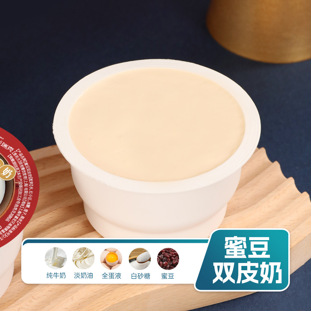 纯牛奶,淡奶油,全蛋液,白砂糖,蜜豆,蜜豆双皮奶