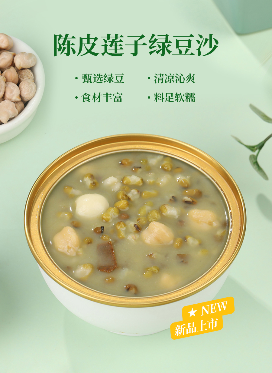 恒源健康(厦门)食品科技有限公司讯:糖水甜品代加工厂家恒源健康(厦门)食品科技有限公司陈皮莲子绿豆沙介绍详情如下: