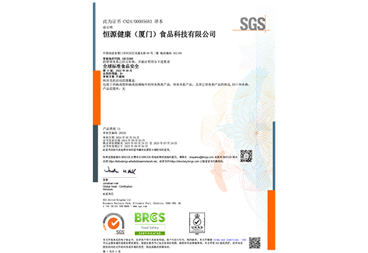 荣获 BRCGS/FSSC2000 等国际认证,意味着我们获得欧盟市场准入的品质通行证,能够为合作伙伴提供更具国际认可的高价值产品。