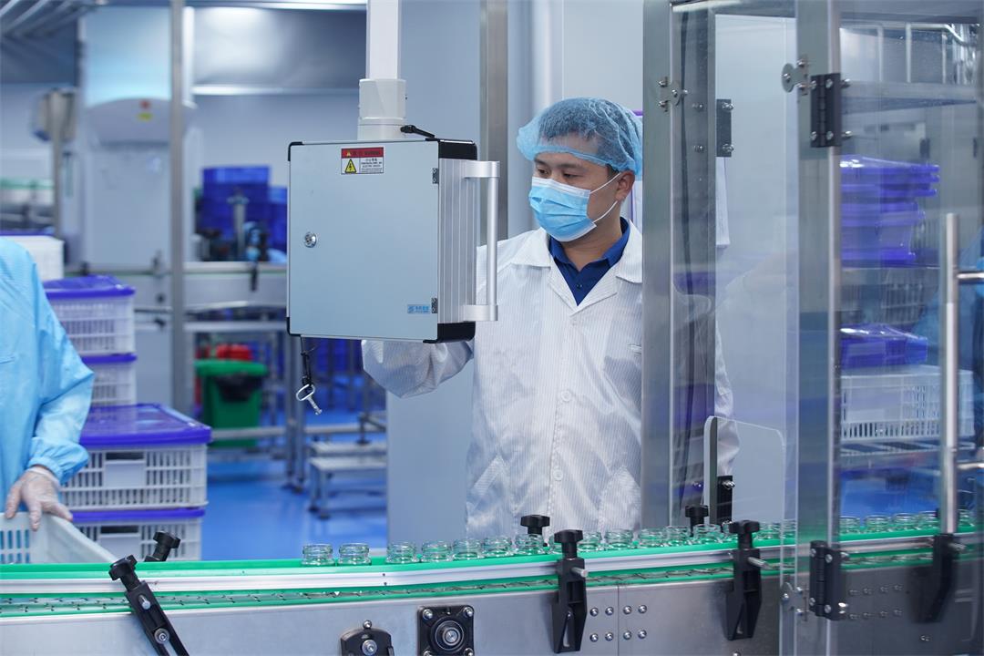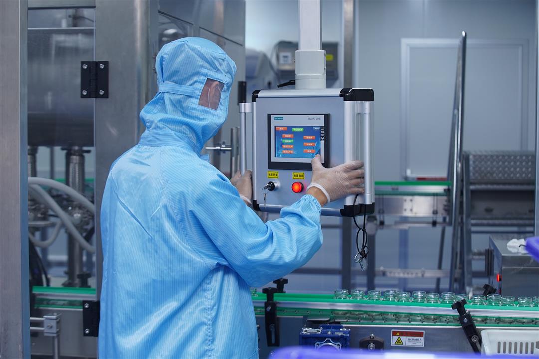 拥有 1.2 万㎡以GMP标准建立的现代化生产车间,配备 4 条智能产线,全自动化的设备处理及生产流水线具有国际水准,以先进的智造空间保障生产的基础实力。