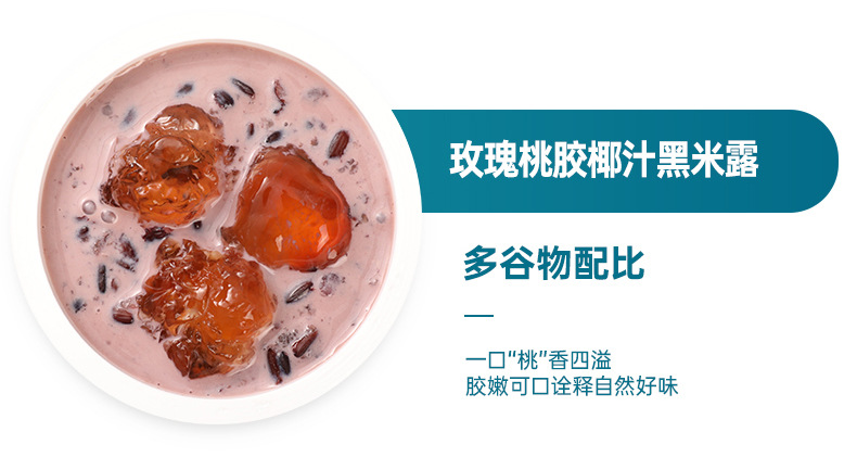 玫瑰桃胶椰汁黑米露,多谷物配比,一口"桃"香四溢,胶嫩可口诠释自然好味